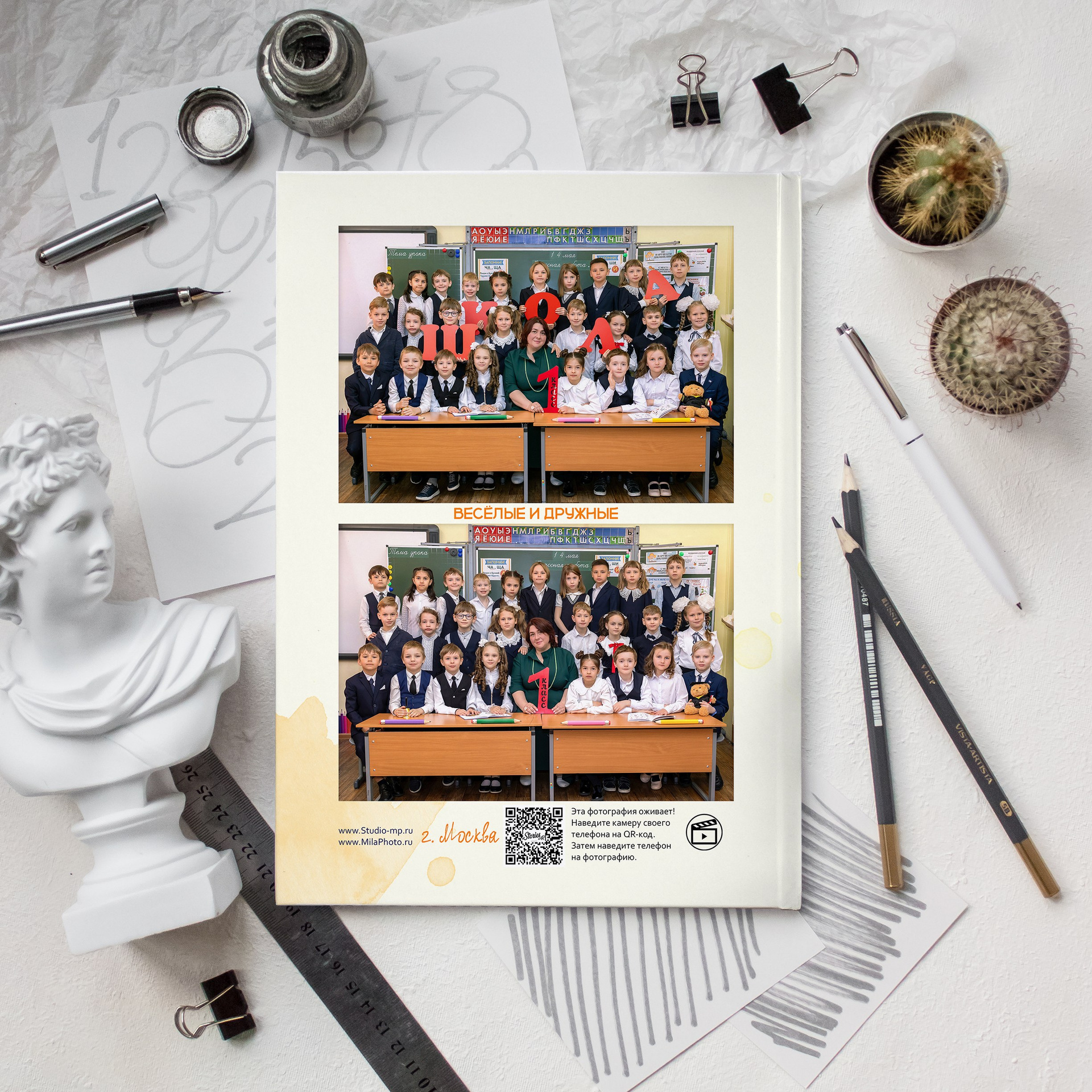Не нужно скачивать дополнительные приложения! Просто наведите камеру вашего смартфона на QR-код в альбоме и наслаждайтесь воспоминаниями.